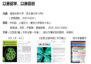 作为iGEM指导教师团队一员,学院青年教师孔凡涛副教授曾两次指导iGEM竞赛,均斩获金奖。孔老师分享了自己在指导湿实验(Wet Lab)和After iGEM过程中积累的宝贵经验。他详细介绍了作为指导教师在队伍组织、选题、备赛、推动队伍高效运转,以及把控重要任务节点过程中的作用。孔老师认为,iGEM大赛是一个非常优秀的平台,有助于激发和培养学生的科研兴趣、创新思维、团队精神和综合能力。目前,两个项目的部分成果已经发表SCI和国内核心期刊学术论文3篇,申报中国发明专利1项,第一作者均为本科生。两支队伍的毕业生全部在国内和国际知名大学继续深造,真正达成了以赛促学、以赛促创的目的。