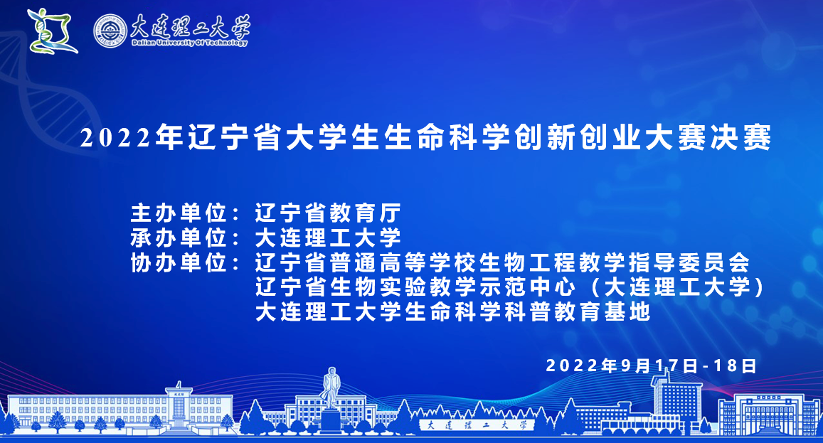 2022年辽宁省大学生生命科学创新创业大赛决赛于2022年9月17-18成功举行。本次大赛由辽宁省教育厅主办,大连理工大学承办,辽宁省普通高等学校生物工程教学指导委员会、辽宁省生物实验教学示范中心(大连理工大学)、大连理工大学生命科学科普教育基地协办。大赛得到省内各兄弟单位的大力支持和积极配合。